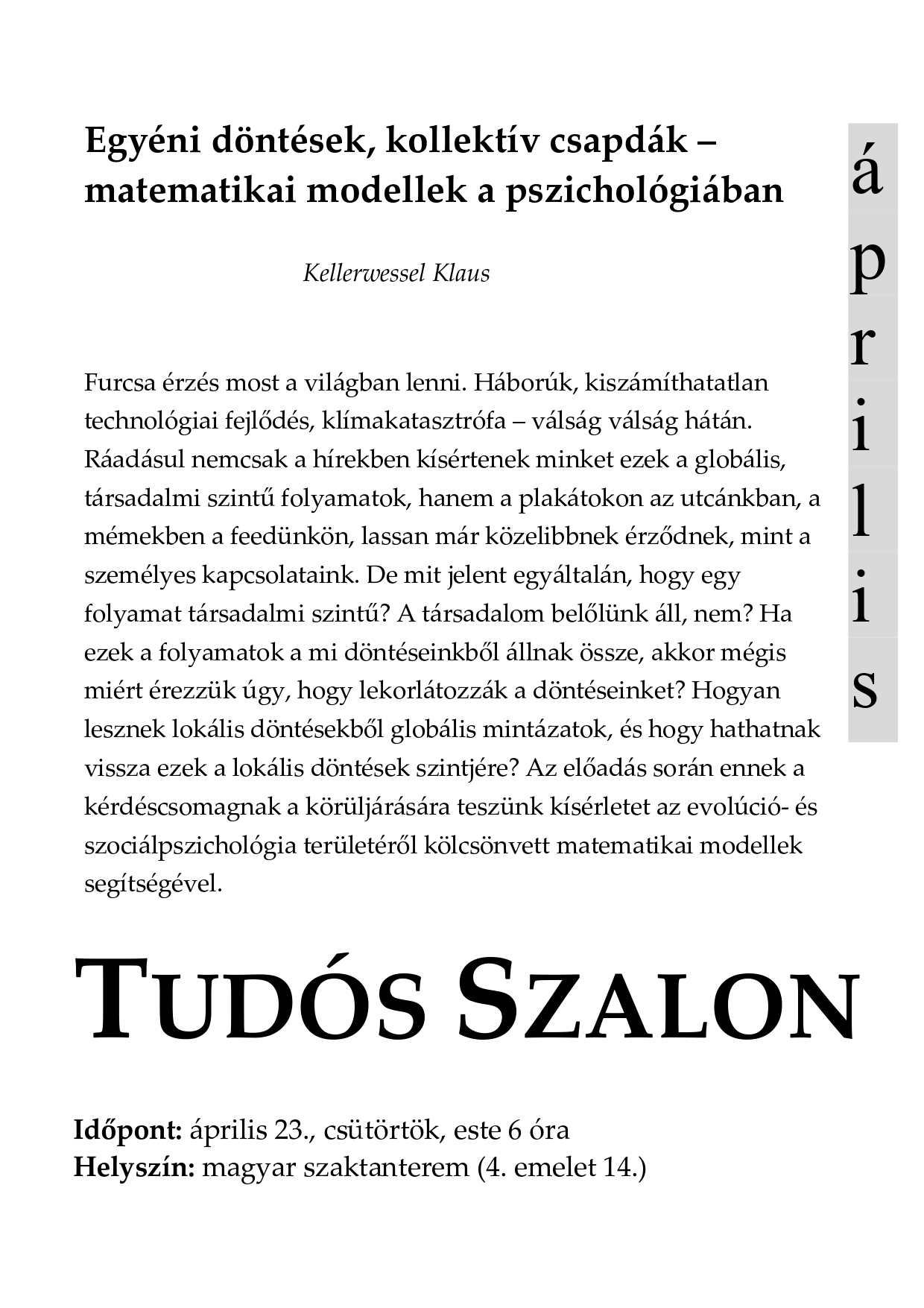 Tudós Szalon - 2026. április 23.